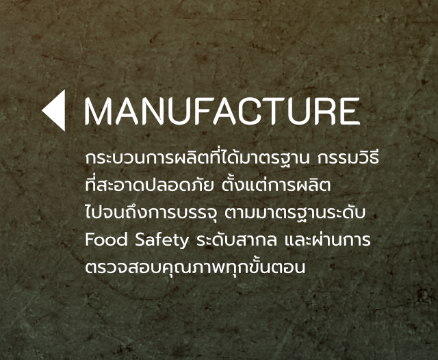 เราดำเนินการภายใต้มาตรฐานการผลิตระดับสากล โดยทีมพัฒนาผลิตภัณฑ์ที่เข้าใจทั้งตลาด และศาสตร์แห่งอาหารอย่างลึกซึ้ง พร้อมสร้างความแตกต่างเพื่อตอบโจทย์ทุกความต้องการ
